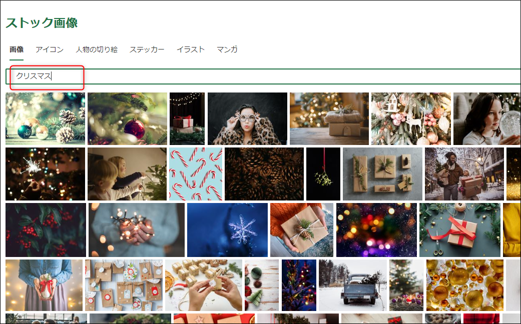マイクロソフトのサイトではクリスマス用デザインのテンプレートがたくさんあります。